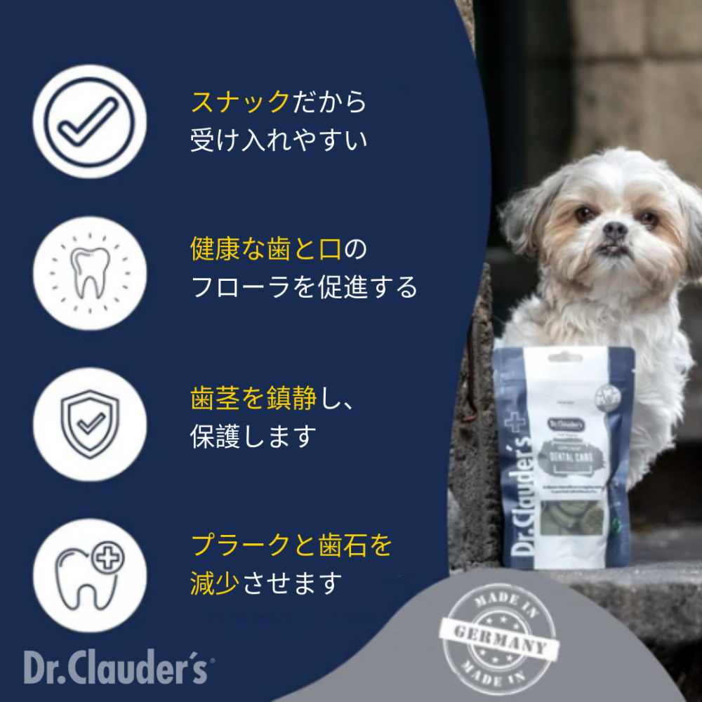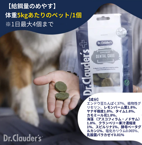 このおいしい犬猫用おやつは、最適なデンタルケアと口腔内フローラの維持を助けます。レモンバームの葉、タイム、カモミールの花、海藻、スピルリナ、クランベリージュース濃縮液を強力にブレンドし、歯垢や歯石に対する集中的な効果を発揮します。さらに配合された乳酸菌パラカゼイは、口腔内微生物叢の健全なバランスを促進し、有害な細菌の定着を抑えることで、歯垢や歯石の形成を予防します。厳選された成分が歯の健康を促進し、歯垢リスクの低減をサポート。口腔内フローラのバランス維持に貢献します。ペットの長期的なデンタルケアに最適な栄養補助食品です。